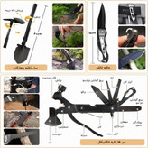 نوع تجهیزات جانبی سفر و کمپینگ:شامل تبر، چاقو، آتشزنه، طناب، کمکهای اولیه، چادر و وسایل ماهیگیری و غیره که داخل عکس هست