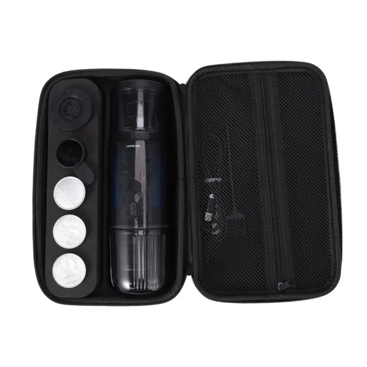 دستگاه اسپرسوساز کوچک قابل حمل LePresso همراهی بینظیر برای همه افراد پر پرمشغله و مداوم در حال حرکت است. با فشار ۹ تا ۱۵ بار، اسپرسویی غلیظ، خوشعطر و چسبناک با کرمی نرم و لطیف ارائه میدهد. میتوانید از کپسول قهوه یا قهوه آسیابشده استفاده کنید که پرکاربردترین برای دستگاه اسپرسوساز است. مخزن آب ۸۰ میلیلیتری و صفحه نمایش دیجیتال آن بسیار جذاب مدرن جلوه میکند. سیستم گرمایشی، دمای مطلوب را تضمین میکند. این دستگاه دارای یک باتری قابل شارژ ۷۵۰۰ میلیآمپرساعتی است و با یک بار شارژ، تا ۲۰۰ شات اسپرسو با آب از پیش گرم شده و پنج شات با آب سرد تهیه میکند. این دستگاه از طریق پورت Type-C برای شارژ سریع شارژ میشود و جنس استیل ضد زنگ آن از نوع درجه یک است که دوام بالایی دارد. با یک کیف مسافرتی، بهترین راهحل اسپرسو برای خانه، محل کار یا سفر است.