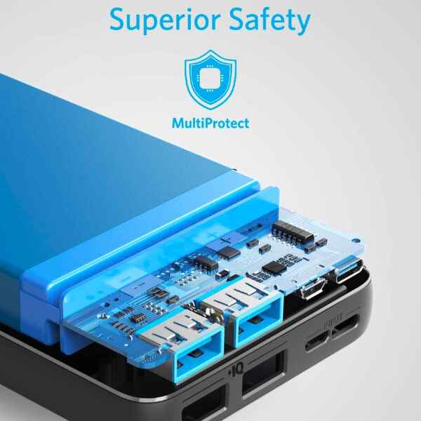 یکی از ویژگیهای برجسته این مدل، مجهز بودن به دو درگاه خروجی USB-A است که امکان شارژ همزمان دو دستگاه را فراهم میکند، در حالی که توان خروجی کلی ۱۵ وات و پشتیبانی از فناوری شارژ سریع، فرآیند انتقال انرژی را بهینه میسازد. برای شارژ مجدد خود پاوربانک، کاربران به دو گزینه درگاه ورودی Micro-USB و USB-C دسترسی دارند که انعطافپذیری بالایی را در انتخاب کابل مناسب فراهم میآورد.