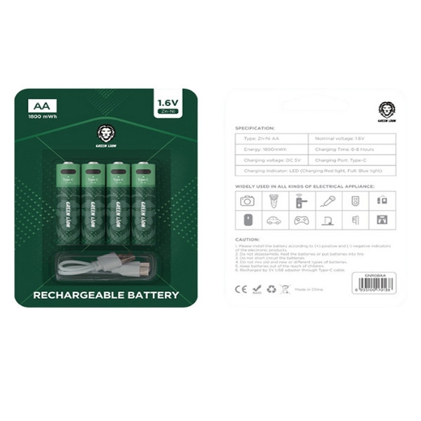باتری قلمی قابل شارژ گرین لاین مدل GNRGBAA بسته چهار عددی